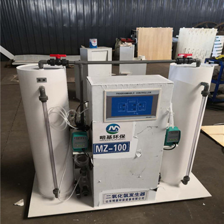 二氧化氯投加器主要含有贮药罐和投加计量泵,...